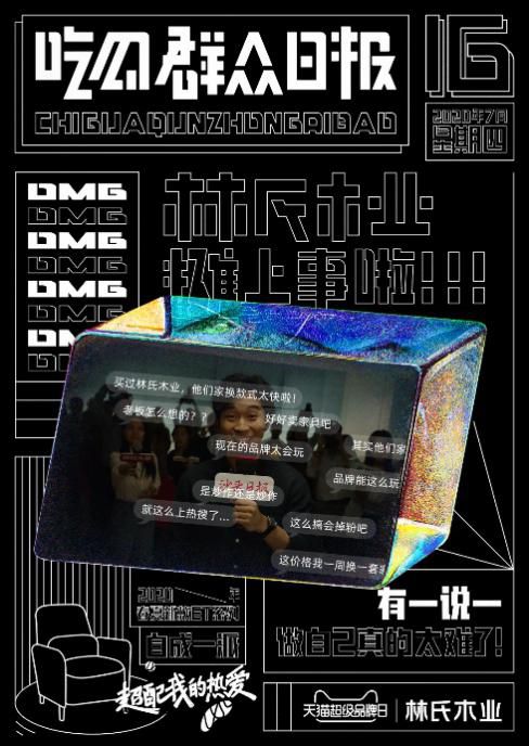 前有kindle盖泡面的官方吐槽自黑,后有腾讯“逗鹅冤”式的傻憨自嘲,无一不给消费者留下深刻印象!此次,林氏木业要做年轻人选择的快时尚家居品牌,与年轻消费者玩在一起,用“非时尚体”的创意自黑营销引1爆话题。