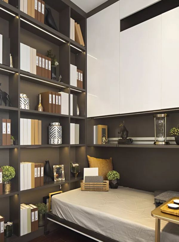 收纳也是小户型在选择风格时需要侧重考虑的,不违背装修风格美观的原则下,能做收纳柜的地方就做起来。比较小的卧室呢就可以用榻榻米衣柜书桌等一体化的家具,这样不光可以解决收纳问题,还能让卧室功能化等到最大的利用。阳台的两端也可以加以利用,一端可以做洗衣机柜用来放洗衣机,上方做吊柜放洗衣液等物品。另一端可以做整面墙的收纳柜,吸尘器等东西就有地方可以放了。