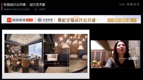 7月17日,由网易家居联合必美地板开展「易起幸福」设计公开课,本期邀请到SCD(香港)郑树芬设计事务所执行董事、创意总监杜恒老师,以“设计 · 艺术 · 家”为主题,分享她对于艺术化居所的设计逻辑与语言符号。
