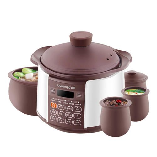 2、用九阳紫砂电炖锅煲汤需4小时以上,煲粥需3个小时以上,材料可以根据需要先后放,但要注意一点点放,不要突然加入大量冷食物在热的紫砂煲中,以防内胆开裂。