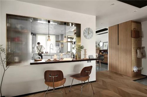 1、现在开放式厨房采用升降帘可以阻挡一些油烟,但是效果不是特别的好,如果你想挡住油烟,较好的方式就是设计成一个玻璃隔断,不仅可以阻隔油烟,还可以隔音,并且还不会遮挡光线。