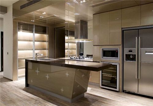4、设计开放式厨房还要多注意就是控制油烟,因为开放式厨房和客厅是没有隔断,如果油烟控制不好就会影响客厅居住和环境卫生。因此我们选购的厨房油烟机一定要功率大的,多功能抽油烟机,才能确保在做饭菜时可以将油烟都能排出去。