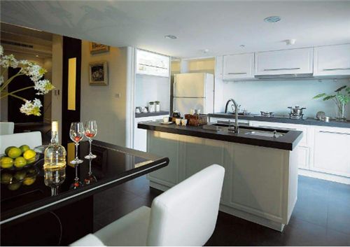 2、厨具与橱柜一定要选择多功能,开放式厨房多数是为了让餐厅与客厅有很大的活动区域,使整个房屋看起来会更加宽大,因此我们只能在厨具和橱柜功能上要做出选择,我们还能利用地柜和橱柜之前的墙面进行安装隔架或者是安装隔板等。