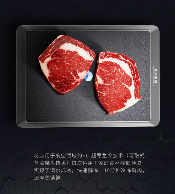 另外,TCLC5智屏冰箱的冷冻室还配备了一块拥有TCL独家专利认证的蓝点魔盘,让冰箱产品在实现智能化的同时,“极速制冷”的本职也不被拉下。蓝点魔盘是一块使用了超导材料的储存区,它可以让啤酒在5分钟内变得冰爽可口,让鲜肉在短短10分钟内就快速降温,实现极速冷冻。要知道,极速冷冻技术从微观上来说可以让食材的细胞的温度快速越过冰晶带,避免鲜肉细胞的细胞膜被刺破,进而实现食材极致养鲜的效果。