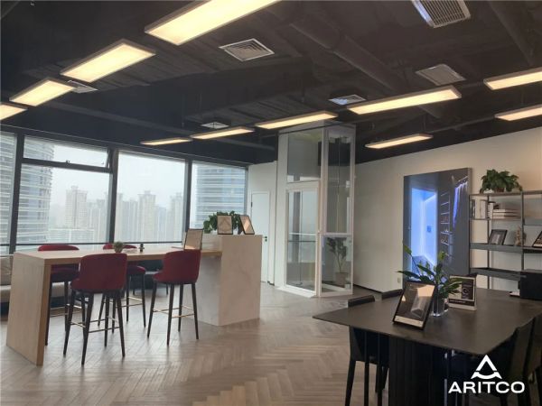 瑞特科将展厅选择在徐州,也是考虑到徐州优越的地理位置和经济发展潜力,徐州展厅采用轻奢简约的现代风格,选用大气的黑色作为顶面主色调,黑白灰的完美结合,营造出现代简约的精致空间。