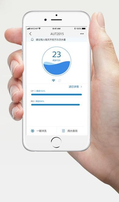另外,双鱼座净水器还支持WiFi智控,通过“飞利浦水健康”app,我们还能查询净水器的运行状态、水质情况和滤芯寿命。当滤芯寿命到期或者机器出现故障时,手机会给我们推送提醒,让我们及时知道和处理。