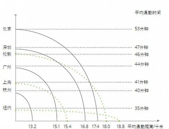 图:全球各大城市的通勤时间对比