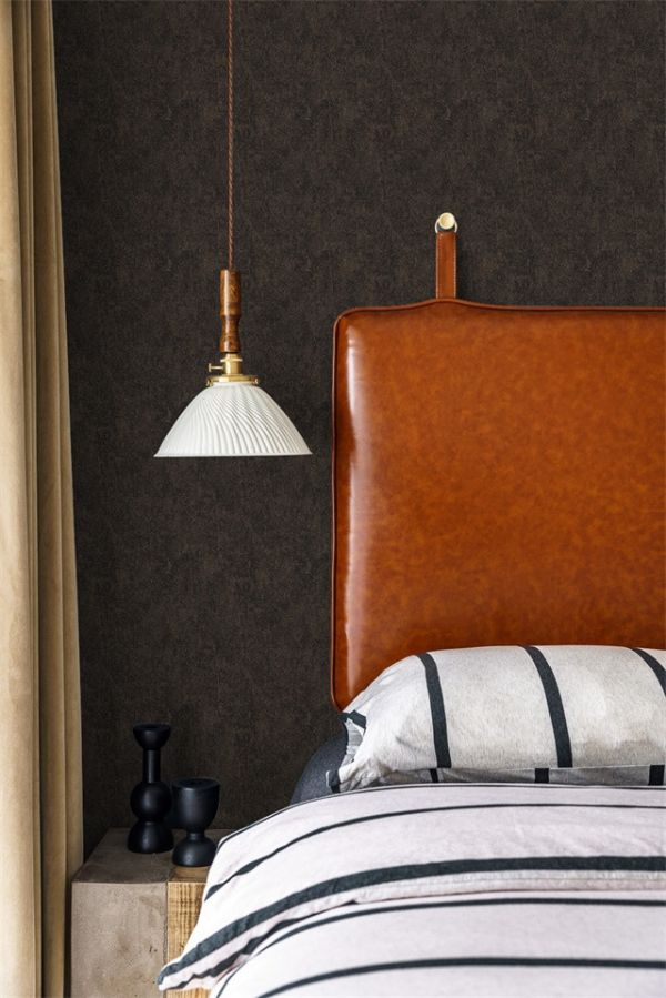 卡布奇诺的芬芳弥漫在空气里,让卧室愈发迷人。墙布的光泽感十足,灯光一开,像小星星一样blingbling,亮晶晶~
