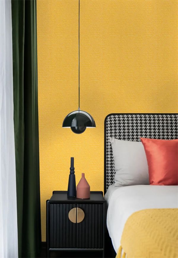 亮眼的小苍兰黄是很多设计师的首选,足够独一无二。墙面上隐藏着一个个菱形组成的球形,赋予静止的空间更多灵动的感觉。