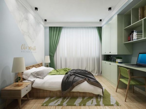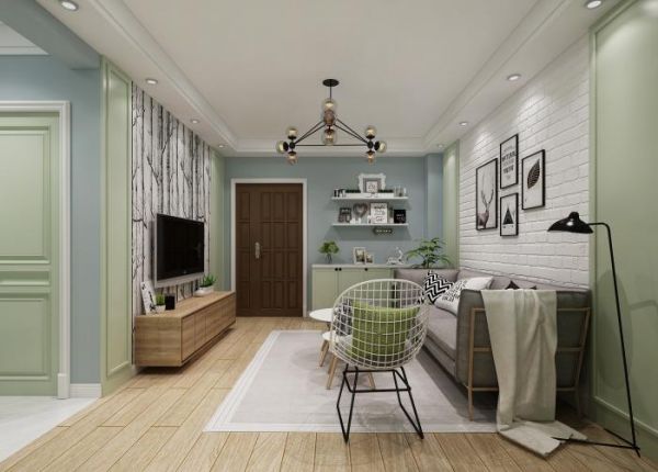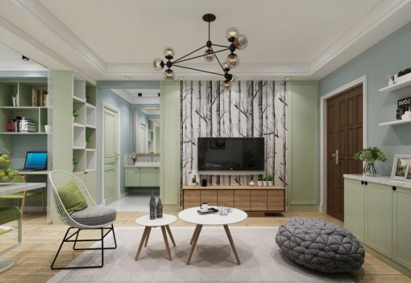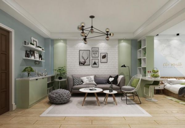 北欧风格样板间主色调为淡绿色,体现亲近自然,轻奢明快感,让偶尔度假的休息起居让人感觉自然、放松、回归大自然。