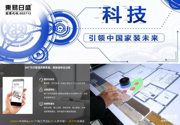 东易日盛是率先在家装行业中提出了“科技家装”理念的企业,在这一战略引领下,集团以科技为驱动力,运用数字化科技手段联通家装全业务。如东易日盛自主研发的DIM+深化设计系统与360°交付管理天眼系统便可为业主们解放装修全过程,让装修既省心又安心。其中DIM+系统可为广大业主提供真实水电报价、线路布置,让隐蔽问题通通呈现在业主面前,不仅有效控制了施工质量还解决了报价被恶意增项的问题;而360°交付管理天眼系统则是将装修服务在线化、过程透明化、结果数据化,从施工到验收,各个节点仅需一个APP便可全部搞定。除上述两个系统外,东易日盛还拥有多项家装“黑科技”,这些“黑科技”的加持大大提升了东易日盛的服务效率与服务质量,也让以往被评论“水很深”的家装业务可以清晰透明地呈现在客户面前,实现所见即所得的完美装修服务。在提升服务品质的同时,东易日盛也在向行业内外展示着其作为A股上市企业雄厚的品牌实力,以及为整个行业做出的科技引领作用。