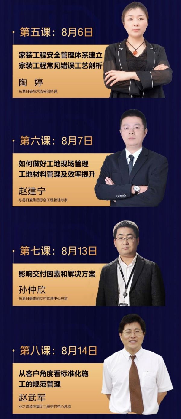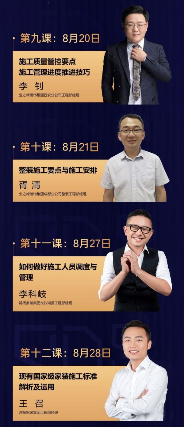 据悉,“中国家装工程管理及家装工地品质提质班”将于7月23日正式开班,让我们共同期待提质班学员和导师企业一起,推动行业施工管理和交付质量的提升,不断为客户提供高品质的家装产品和服务。