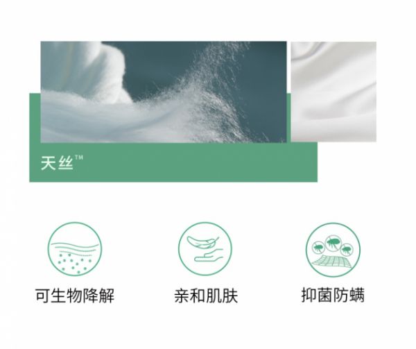 如同盛夏穿短袖,寒冬穿羽绒一般,床品也有四季之分。水星家纺天丝系列套件触感清凉,轻松享受如森林般的清爽舒适。获得过欧盟环境奖的天丝™,以天然针树作为原料生产,被誉为“21世纪绿色纤维”,健康安全,自然舒适。极致的材料,融合水星蚕丝蛋白科技,赋予面料蚕丝般的莹润触感,让使用者在甜美睡梦中,享受敷面膜般的滋润。