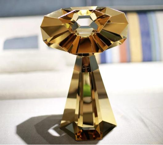 Mr.C+ 24K钻石灯不仅有24K纯金外身,同时利用钻石切割工艺创建出六边形的分型钻石外观,使这盏钻石灯自带奢华属性,诠释了金子与光的关系。“钻石表永恒,就像这盏灯打开之后,光就代表了生活的希望和不灭。”这是钻石灯名字的由来。