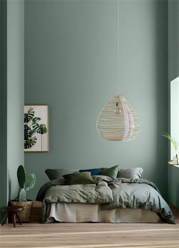 卧室中的灰绿色是优雅的淡然的,不似张扬氤氲着生命活力,灰绿色的暗色系墙面,让人觉得它特别适合用来助眠。浓郁却不霸道,沉稳而又低调的灰绿色,有一种不言而喻的美。