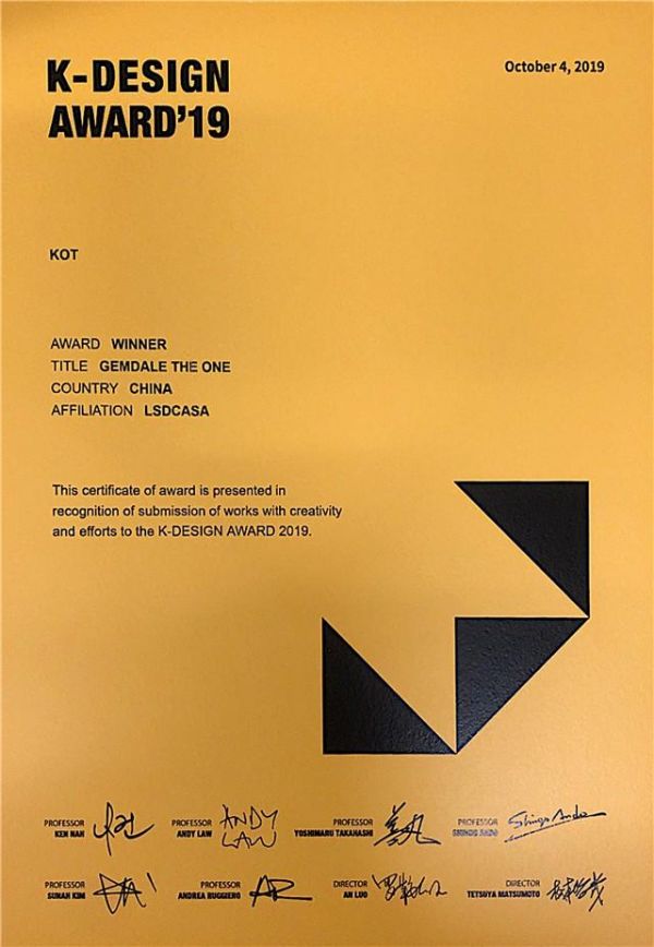 2019年11月,LSD凭借在金地壹阅府中的卓越设计理念,获得K-DESIGN AWARD优胜奖。