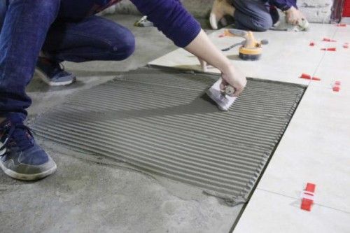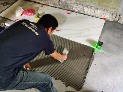 在施工时,圣诞鸟整装的工人师傅都是用齿形刮板将瓷砖胶均匀的涂抹在地砖上,地面的瓷砖胶粘合层与地砖上的瓷砖胶粘合层的齿形采用横竖交错的方式进行铺贴。