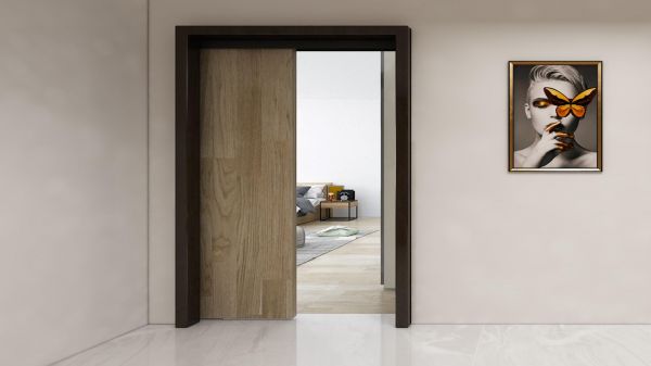针对传统“口袋门”(入墙式推拉门)研发的更加落地的产品方案,传统“口袋门”产品受施工、安装难度大,售后维修成本高风险大等因素影响,设计师、厂家、消费者都不敢用口袋门的方案,一旦出现问题就要拆墙维修,成本极高。