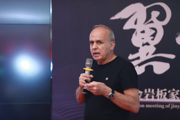 接下来,金意陶意大利研发设计师GIUSEPPE ZUNINO在会上分享,他表示金意陶岩板在研发当中创新与设计感是不可或缺的。金意陶重视技术,通过技术去达成产品的创新。并在设计上遵循自然,致力于还原真实的石材,同时也述说了在国际前沿中的岩板应用案例。
