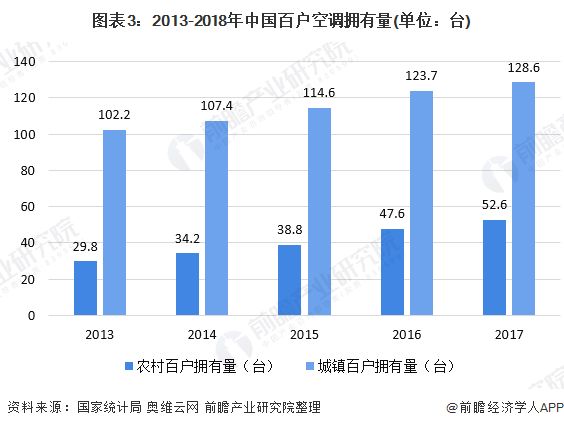 根据奥维云网公布的数据显示,截至2019年,中国空调市场保有量为4.5亿台,预计中国空调更新换代比率为64.1%,存量市场成为拉动中国空调消费的主要动力。增量市场上,近年来中国空调百户拥有量逐年上升,三四线城市的拉力逐渐减弱,增量市场空间有限。因此,我国空调行业已经进入存量市场。