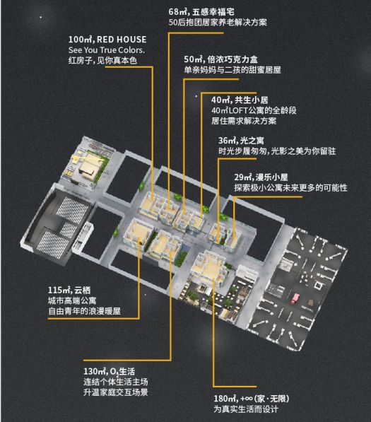 从29㎡的极小户型,到180㎡的超大住宅空间,“未来社区成果展”中规划了9个不同的户型,而这不同的户型空间又被9个设计机构赋予不同的生活场景和生活形态,能轻松住下2夫妻+2小孩+1只猫的29㎡漫乐小屋、有老有小但无拥挤感的36㎡光之寓、能解决全龄段居住需求的40㎡共生小居、单亲妈妈与二孩独立又没距离感的50㎡倍浓巧克力盒、解决50后抱团居家养老问题的68㎡五感幸福宅、既显个性又具科技感的100㎡RED HOUSE、代表城市高端公寓新空间的115㎡云栖、家庭交互场景新模式的130㎡O2生活、改善型高配户型的180㎡ +∞(家·无限)。