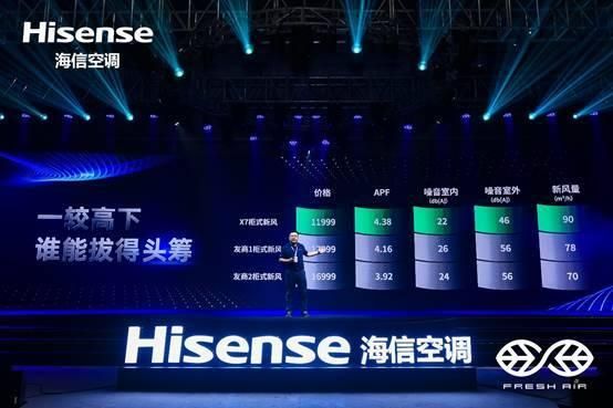 22日晚,海信空调揭晓了其成为新风空调领跑者背后的原因。发布会上,海信公布的新风空调X7柜机与2款其他品牌新风柜机测评显示:X7柜机新风量达到90m³/h,超竞品120%到130%;X7的室内噪音值为22db,低于竞品2-4db,而室外噪音更是低出10db;而在能效比、能效等级方面,海信X7都能够吊打竞品。