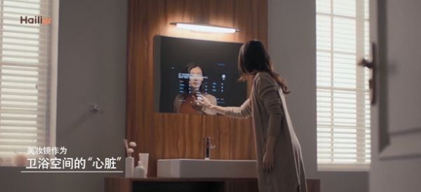 在海骊智能卫浴场景中,以“美妆镜”为智能终端,打通淋浴、洗漱、如厕和洗衣四大场景,通过触屏及语音双重控制,实现全屋智能物联,还可以接入更多第三方智能设备。
