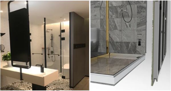 内嵌装配式的内芯,海骊整体卫浴还有着可媲美传统卫浴的观感质感,复合基材声波穿透,减少空洞感,瓷砖纹理可依据不同合作方需求定制,实现了工业化量产与个性化定制的完美结合。