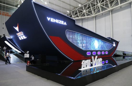 作为最有创意的展位之一,威尔斯展馆是一艘巨型的3D立体式大船造型,占地总面积约720m²,颇具视觉冲击力;极具线条感的船身,有一种船舰蓄势待发的动感。威尔斯投入巨资,花费数月制作了展会上最大的双面冰屏,给宾客一个视听环绕、震撼的感官享受。在船的下方,是一个360°海平面环绕式的底座设计,登上舰船如临海上,打造一个沉浸式的海上真实视界!