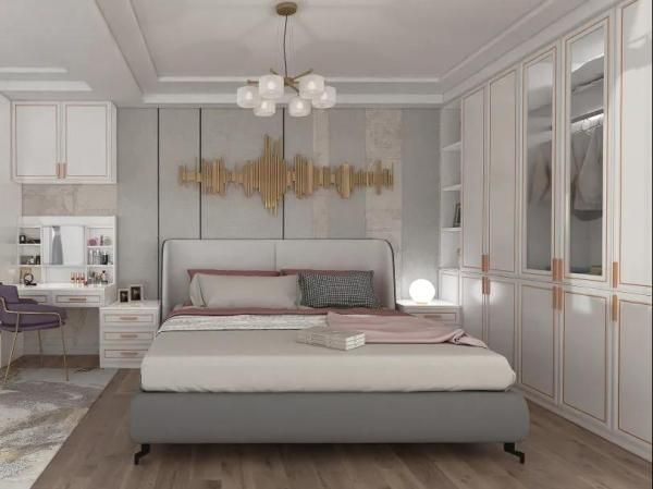 选用莫兰迪色定制卧室家居, 通透干净,多而不杂,注重生活品位的同时还注重舒适的生活体验。