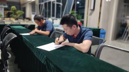 考场上,各安全管理人专心做题,由于事先复习充分,相当多的参试人对此次考试信心十足,认真解答。