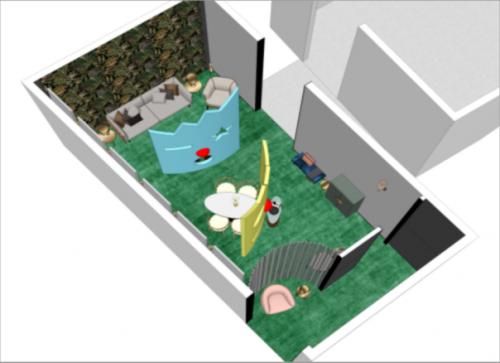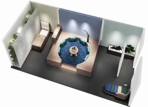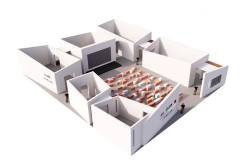 其实场地效果图,可以体现此次湾区·城市设计展的理念——场馆整体就好比是一个村落,每个设计空间代表着一户人家,而中间的场地代表了公共活动空间,用作交流切磋各自的想法。