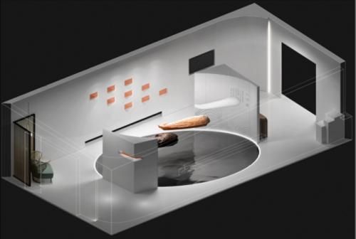 当然,场地中央空地会举行一系列活动,包括了开幕式、论坛和颁奖仪式等。大咖的设计空间则围绕空地分布于场地四周,在观众进入场地后,就从右手边开始此次的鉴赏之旅,第一个将会看到的是殷艳明的作品,然后连接到陈岩的做品,余静赣的作品是在场地的中轴线上,也就是主会场大屏幕背后,在它的另一侧则是李奇恩的作品,而秦岳明的设计作品则是整个场馆的收尾部分。5位设计大咖、5件设计大作,完全串连在一起,观众可在欣赏完一件作品之后自然切入到另一个空间当中,一气呵成的欣赏完所有佳作。