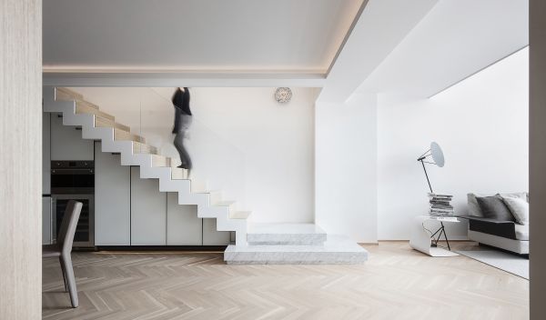 设计师认为,楼梯在空间中不是单独存在,而是在空间中犹如雕塑体,是衔接上下空间最重要的纽带。