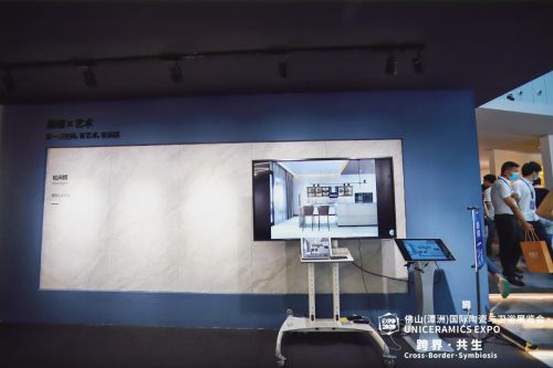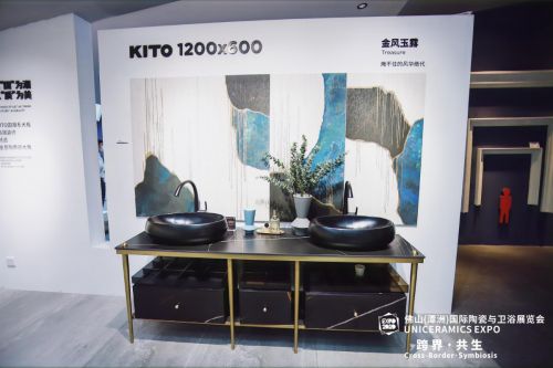 金意陶郑岩:岩板家居面板是今年大热点,本次我们展位展示的前台台面,浴室柜台面和客厅台面,都实现了陶瓷板材化。7月23号在金意陶总部举办的新品品鉴会,大量的岩板产品在金意陶总部三楼展示,还可以看到电视柜、橱柜、浴室柜、厨卫台面、餐桌等这些产品是如何应用上岩板材料的。其次,金意陶岩板产品也在走跨界渠道,比如和日本骊住集团跨界合作主要是在卫浴应用方面,双方合作的达成也意味着金意陶岩板产品的应用和落地方面已经与国际接轨。