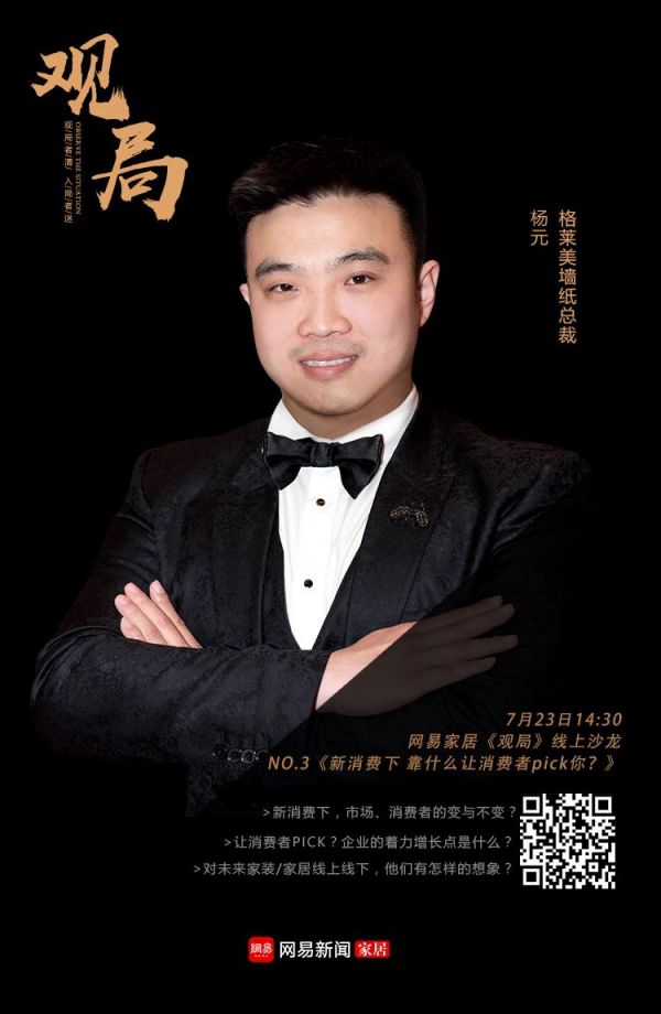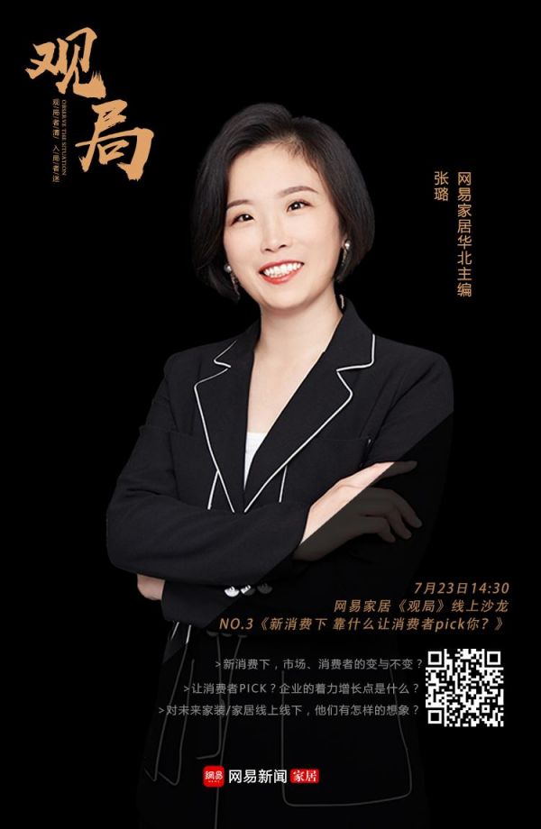 当新消费的巨大活力为经济转型升级注入强劲动能,家居企业感知了哪些市场、消费者变化?如何加强企业的增长力以更好满足消费需求?7月20日,网易家居 以 “新消费下 靠什么让消费者pick你?” 为 主题 , 特别策划《观局》线上沙龙NO. 3 , 邀请 霍尔茨木门总经理赵崇联 , 蓝景丽家总经理李李 , 华耐家居总裁助理、首席战略官文军 , 格莱美墙纸总裁杨元 一同参与沙龙。 网易家居华 北 主编 张璐 担任 沙龙 主持,与嘉宾们思辨当下的家居消费新趋势,以期对企业、行业发展启示一二。