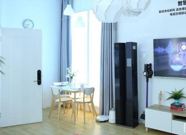 结束在净氧体验间的参观,接下来便是卡萨帝智慧空气场景。首先我们看到的是智慧客厅场景,当你下班回家后,空调已提前通过智家APP开启,一进门就是舒适空气;吃完饭后,老人和孩子一起在客厅看电视,空调能根据不同人群冷热需求定制送风;不用担心空气不新鲜,空调有智慧净化和智慧新风功能,把好空气洁净关。