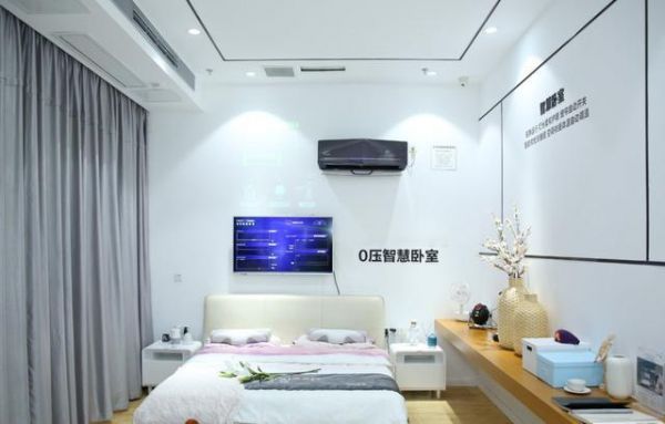 从客厅出来,迎面便是为我们提供舒适睡眠环境的智慧卧室场景了。它有就寝模式、唤醒模式、起床模式和离家模式,关注你一天中不同时段的所有空气需求。以就寝模式为例,只要对小优说"我要睡觉了",灯光、音乐和香薰自动开启,帮助提升睡眠舒适度;入睡后,智慧枕会监测呼吸、心率等数据,以此判断睡眠状态,联动空调调节温度,让你整夜都处在最舒适的温度区间里。