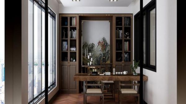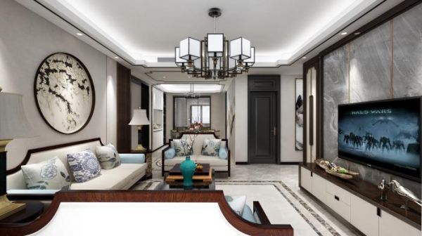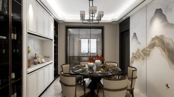 对于现代中式风格的布局上来说,也沿用的传统的中式风格的布局理念。需要保持最大限度的利用好整体空间的采光、通风,其次的空间布局应该以房屋主人的生活习惯和个性需求来进行设计。对于整体空间的设计还需要与房间中的家具布置进行搭配,合理的运用室内的家具以及装饰性的工艺品可以得到一个更为合理的空间布局。现代中式风格的家具体现出了对于现代化的设计形式,传统古典型的空间以典雅、大气的设计为主,而现代居室由于格局和面积的局限只能够追求其神似。现代中式风格的设计也遵循着对称性的家具摆放,同时在古典形式的家具中采用现代感的设计形式,得以体现出时尚、简约的设计形式。比如吧玻璃搭在榆木架子上制成中式餐桌就非常受年轻人的喜爱,这样的设计也体现出现代感的创新设计。中式风格的家具和饰品往往颜色较为深沉,但是现代中式风格的颜色搭配上就较为简约。颜色的选定应该以家中的设计风格来决定,现代中式风格的颜色一般选择简单的白色和黑色相互搭配,或是选择淡黄色、红色为主主色调来表现出现代感的设计形式。需要记住的是室内的主要颜色不应超过三种,以免过多的色彩冗杂在一起得不到主色调的体现。