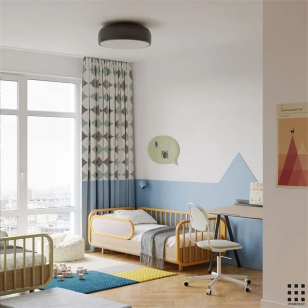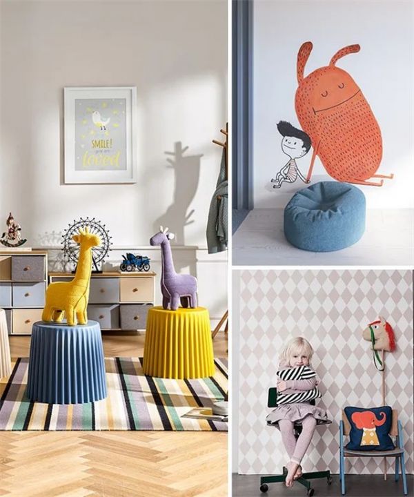 色彩是儿童房有别于成年人房间的元素之一,儿童房的配色设计不建议采用黑色灰色等深色,避免产生压抑的感受,而是需要采用明度高的色彩。