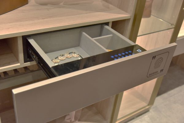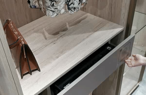 指纹密码抽屉的设计很好地解决了使用者对于贵重物品的存储问题,而它的操作方式也非常简单。按下指纹,自动开启,推入抽屉,自动上锁。