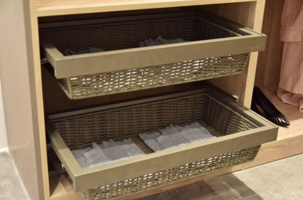 裤杆采用无卡位设计,方便衣物折叠存放,像西裤、围巾之类的衣物存放不易变形、产生折痕。同样采用抽拉、开放式设计,在我们找寻衣物时能直观呈现。