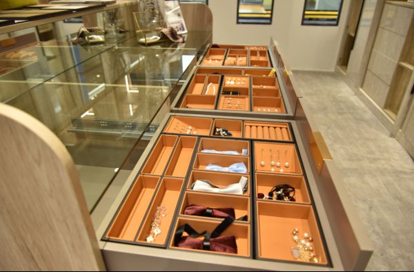 这个玻璃层板柜让人不禁想起了珠宝店的展示台,该款衣帽间的玻璃层板设计就是帮不少女性朋友实现“在家开珠宝店”的梦想。玻璃层板设计的通透性很高,且柜内多种隔层设计,更好地帮你收纳珠宝、配饰,让“我的另一只耳环哪里去了”这些烦恼成为过去式。