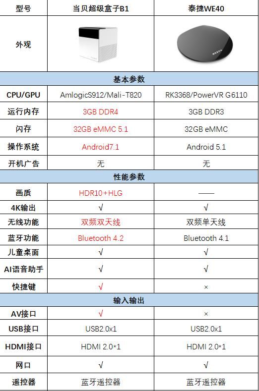 首先,惯例,我们先来看看两款盒子的参数对比。