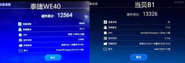 可以看到当贝超级盒子B1的跑分比泰捷WE40的分数高了一千多分。