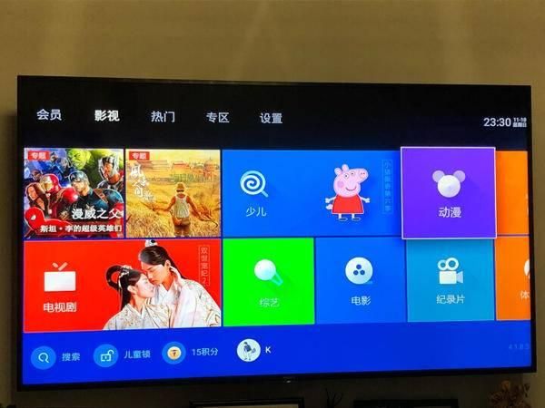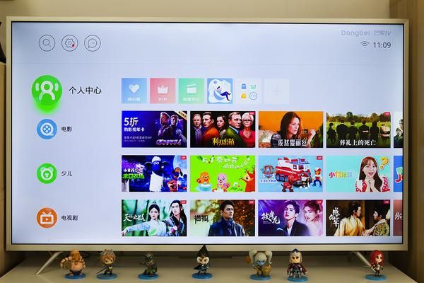 当贝搭载的是自家深度研发的DBOS,珍珠白的简约扁平界面,高级感很足。个人中心、常用应用横向一排,电视、电影等频道则纵向排开。