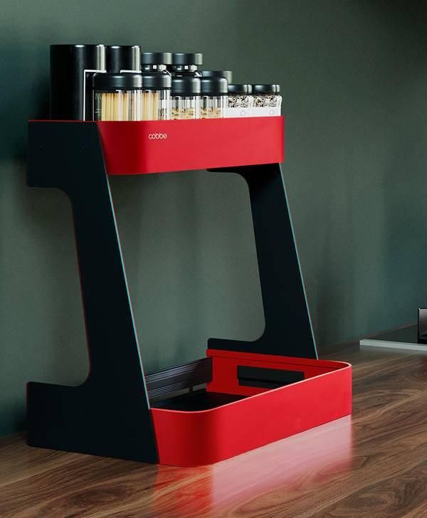 红色热情,黑色沉稳。当这两者颜色碰撞在一起时,勾人心魄令人侧目。两种颜色奇妙的组合可以达到一种视觉和感受的完美平衡,红色点亮了黑色的浓稠,也留给黑色去透彻诠释深邃的想象空间;黑色包容了红色的张扬,也衬托出红色尽情尽兴的绽放。卡贝红黑厨房置物架,带着撞色美学,着陆于厨房领域。