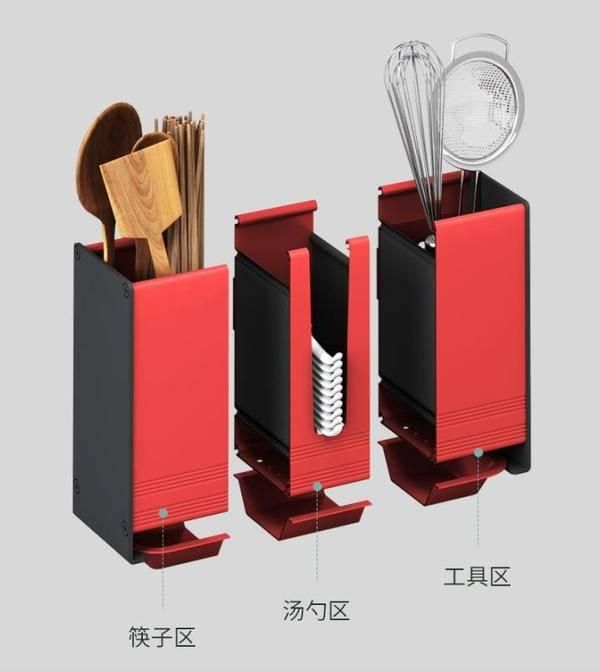 为此,卡贝准备了丰富的种类供用户选择,置物架、排钩、碗碟架、刀架、筷筒等等,其中筷筒专门做成了一体三区的设计,不同餐具有不同的位置存放,互不干扰方便取用。