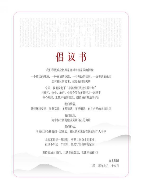 7月28日,方太集团联合中国社区发展协会、新浪地产、恩派公益基金会、中国社区扶贫联盟,共同发起"幸福社区共建公益计划"。