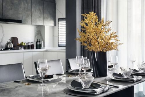餐厅以自然默默回馈对生活的美好,每天可享用户外一年四季的季节变幻。延续客厅整体,搭配瓷器、金属,含蓄而富生活质感。无语的花草,花草触及之处,皆是对生活的情感力表达。